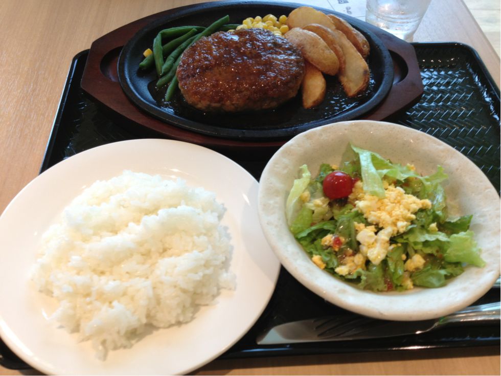 ドック終わりに、病院内のレストランでご褒美ハンバーグ食べてしまったよ…