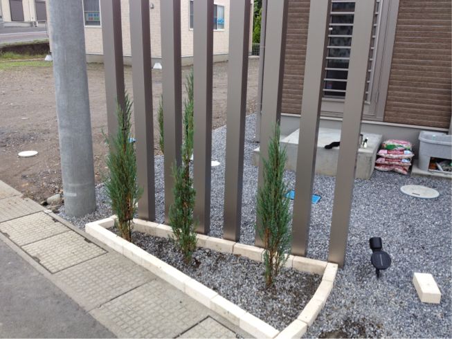 レンガと化粧砂利で…