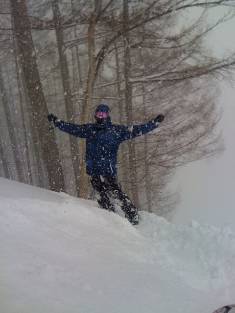 圧雪コースも、降り続いた雪で…あっという間に膝パウダーです・・・ツリーランなんて…腰パウとかですよ…頭からナニカデマスヨ・・・・