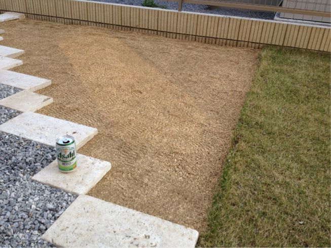 芝の目土を足で転圧して…トンボで平らにならして…水をまいて…初日の作業は終了しました…