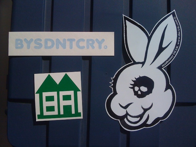 とりあえず今回は、大好きなブランドのUG. MADBUNNY、BYSDNTCRY、INHABITANTのステッカーをチョイス!後からまた増やそっと!