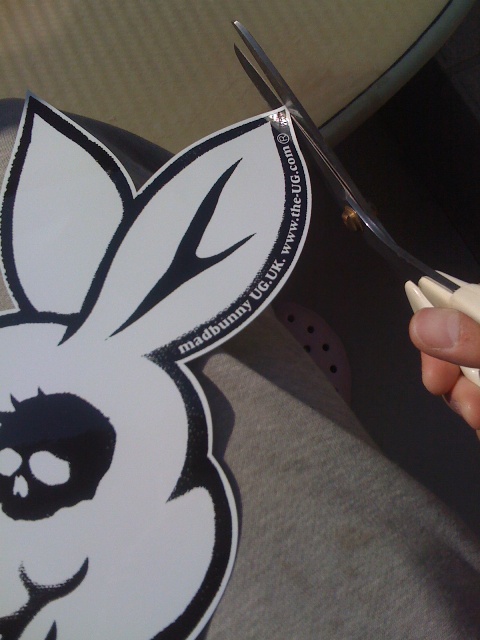 MADBUNNYのステッカーは今までの経験上、耳の部分やまつ毛の部分をRにしないとすぐ剥がれてしまうため、少しカットします。
