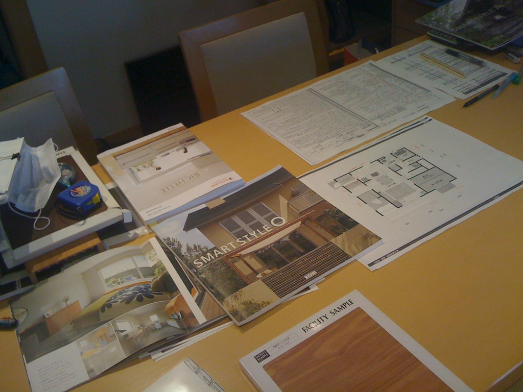 サンプル見たり、瀬戸さんのI-padの画像見たりしながら…窓とかフローリング、風呂、ドア、屋根材、外壁材などの打ち合わせをやりました。