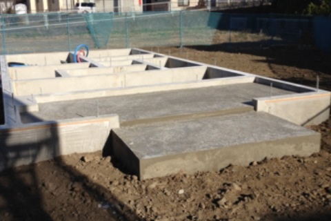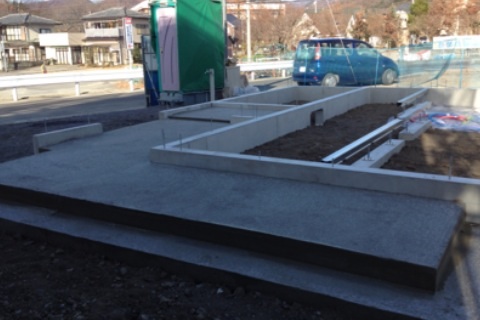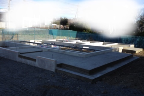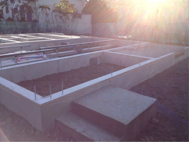 今日の午後、建築計画ちうのマイホームの状況を見に行ってみましたら…基礎が出来上がってました…